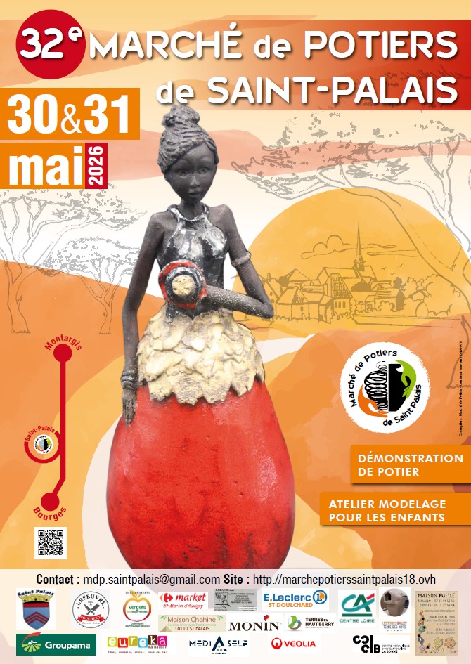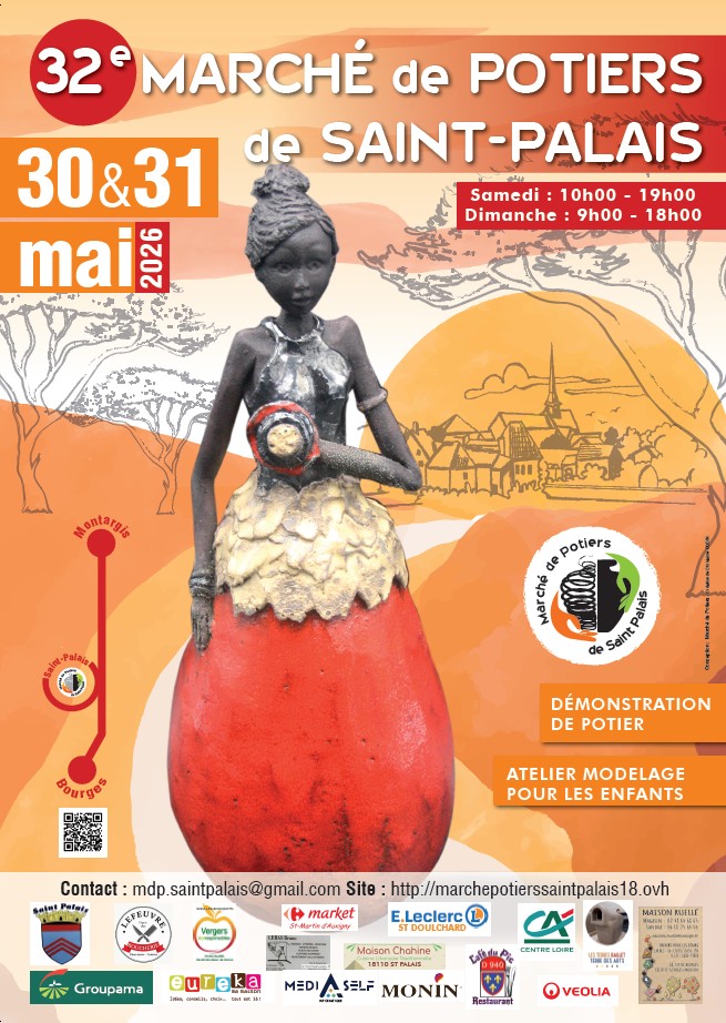 Le marché de potiers de Saint-Palais a lieu dans le village de Saint-Palais, dans le Cher (18) . Ce village se situe à 20 kms au nord de Bourges tout près de la route Montargis Bourges.